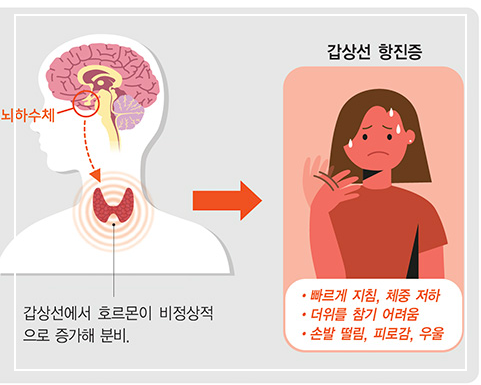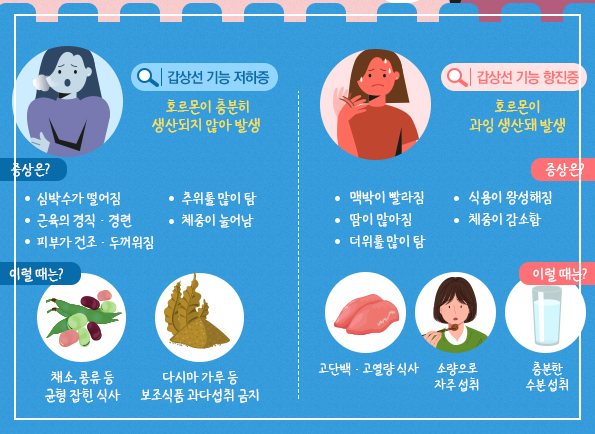 특히 밤에 잠들 때 숨이 막히는 듯한 느낌이 든다면 갑상선 이상을 의심해볼 필요가 있어요.