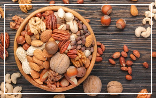 호두, 아몬드, 피스타치오, 호박씨 같은 견과류에는 혈압을 낮추는데 도움이 되는 섬유질과 아르기닌이 풍부하게 들어있답니다. 특히 호두에는 오메가-3 지방산의 일종인 알파리놀렌산이 100g당 9g이나 들어있어서 혈액 점도를 낮추고 혈류를 개선하는 효과가 뛰어나요.
