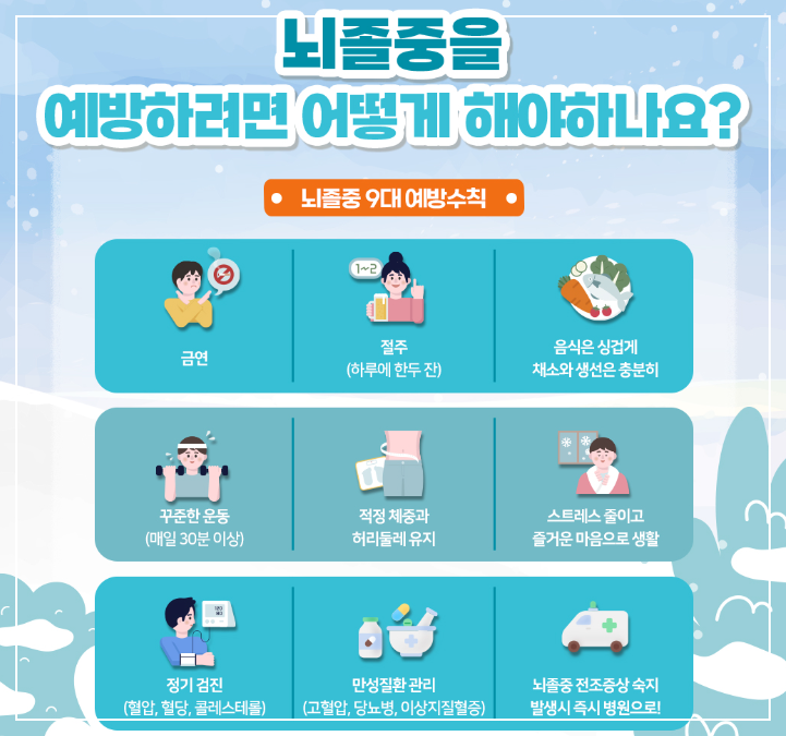 스트레스도 최대한 줄이고, 충분한 수면을 취해 온전한 회복을 이끌어주세요. 특히 50세 이상이거나 가족력이 있다면 정기적으로 뇌혈관 검사을 받는 것이 좋습니다. 작은 습관이 건강을 지키는 가장 큰 힘이 되니 오늘부터 바로 실천해보시길 진심으로 응원합니다.