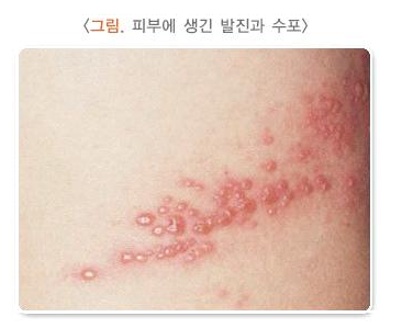 붉은 반점이 나타난 후에는 작은 물집들이 무리를 지어 생기기 시작해요. 이 수포들은 팥알 크기 정도로 작고 투명한 액체가 차 있으며, 신경 분포를 따라 줄지어 모여 있는 모습을 보여요. 처음에는 몇 개만 생기다가 점차 개수가 늘어나면서 넓은 범위로 퍼지게 된답니다.