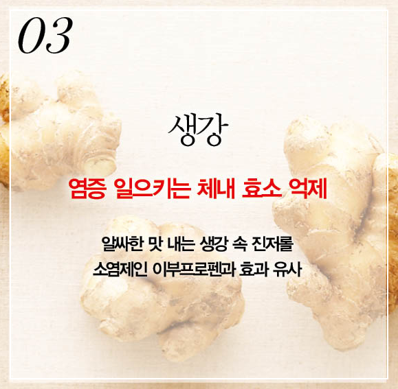요즘 우리가 너무 많이 섭취하는 소금은 뼈 건강을 약화시키고 만성염증을 악화시킬 수 있어요. 소금 사용을 줄이고 대신 이런 향신료나 허브를 요리에 활용하면 염증을 억제하는 데 도움이 된답니다. 강황차, 생강차 같은 차로 마셔도 좋아요.