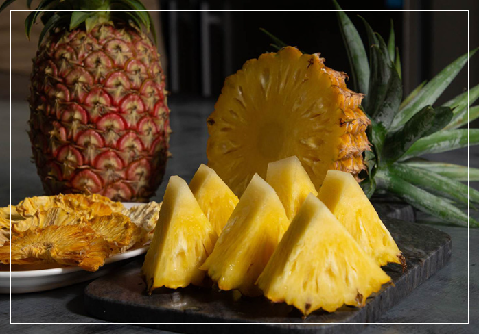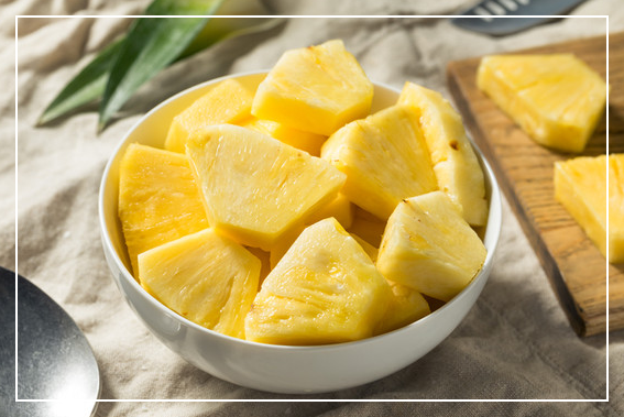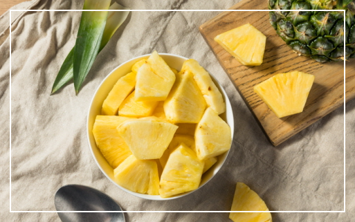 브로멜린은 위장 내에서 음식물이 잘게 분해되도록 돕고, 영양소의 흡수율도 높여준답니다. 그래서 육류 요리와 함께 파인애플을 곁들이면 소화가 한결 편해지는 것을 느끼실 수 있어요. 평소 소화가 잘 안 되시는 분들은 식후 디저트로 파인애플을 드셔보세요!