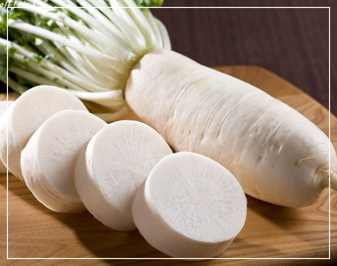 무에는 디아스타제 같은 전분 효소와 단백질 분해 효소가 있어서 천연 소화제로도 불려요. 무는 병원성 세균에 의한 감염을 막아주고, 비염 증상을 완화시키는 효과가 있는데, 특히 비염 예방이나 기침, 천식, 축농증 등 기관지염과 호흡기 질환에 큰 도움이 된답니다.