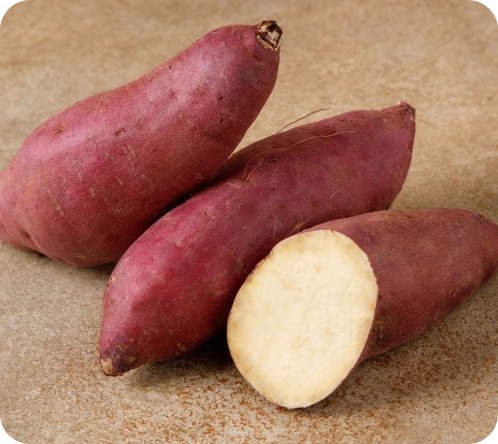 고구마는 100g당 약 35.52g의 탄수화물을 함유하고 있으며 열량은 147kcal 정도예요. 복합 탄수화물의 훌륭한 공급원으로 식이섬유가 약 3g이나 들어 있어서 포만감을 오래 유지시켜 주고 소화를 촉진하는 데 도움을 준답니다.
