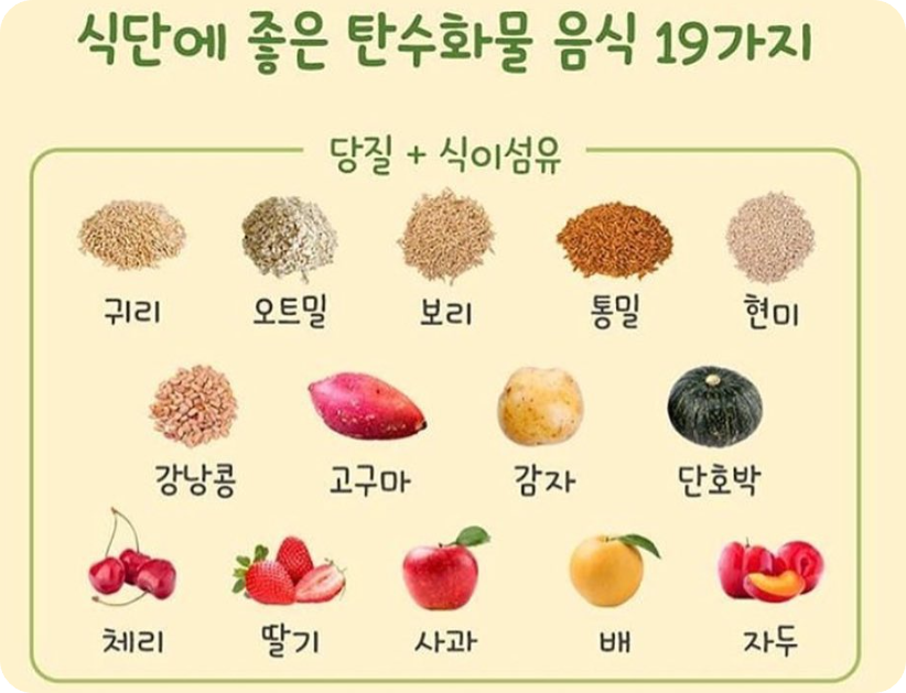 사실 탄수화물의 종류에 따라 건강에 좋은 것도 많답니다. 정제된 곡물이나 가공식품에 들어 있는 탄수화물은 피하는 게 좋지만, 자연식품에 들어있는 복합 탄수화물은 식이섬유와 각종 비타민, 미네랄이 풍부해서 오히려 건강에 도움이 되죠.