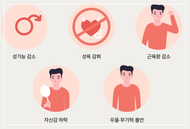 남성호르몬인 테스토스테론은 성욕과 성 기능을 조절하는 핵심 호르몬인데, 이 호르몬 농도가 떨어지면서 자연스럽게 성적 욕구가 감소하는 거랍니다. 단순히 피곤해서 그런가 보다 하고 넘기기 쉽지만, 이런 변화가 지속된다면 남성 갱년기를 의심해볼 필요가 있어요.
