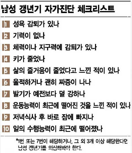 갑자기 예전과 달리 우울하고 불안한 감정이 지속된다면, 단순히 스트레스 때문이라고 넘기지 마시고 남성 갱년기를 의심해보셔야 해요.
