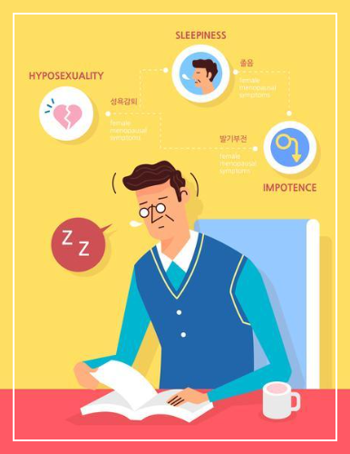 남성 갱년기는 30대 중반 이후부터 남성호르몬인 테스토스테론이 서서히 감소하면서 시작되는데, 여성처럼 급격하게 변화가 일어나지 않아서 본인도 모르게 지나치는 경우가 많아요.